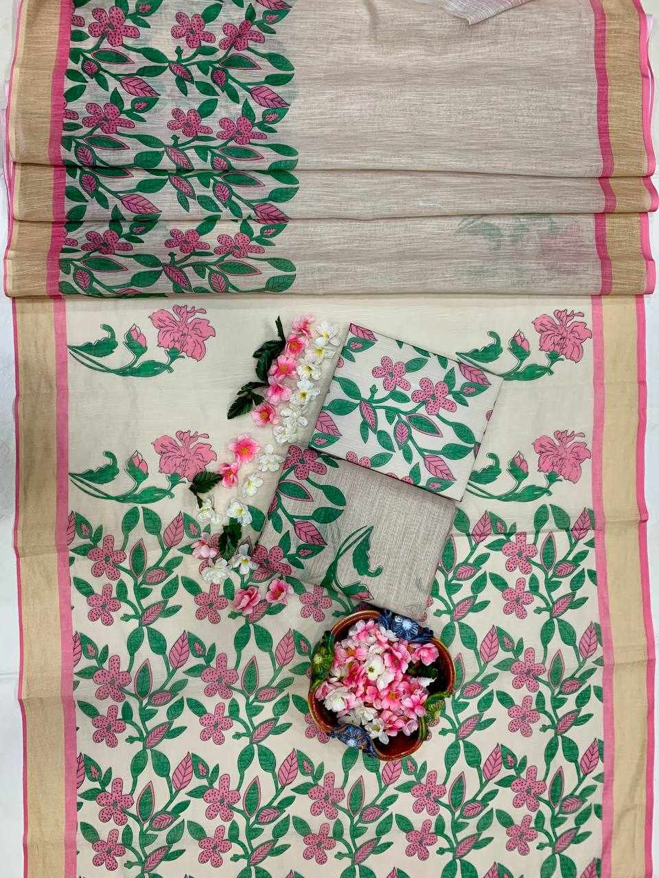 Saree Fabric: Premium Linen Cotton with beautiful digital print