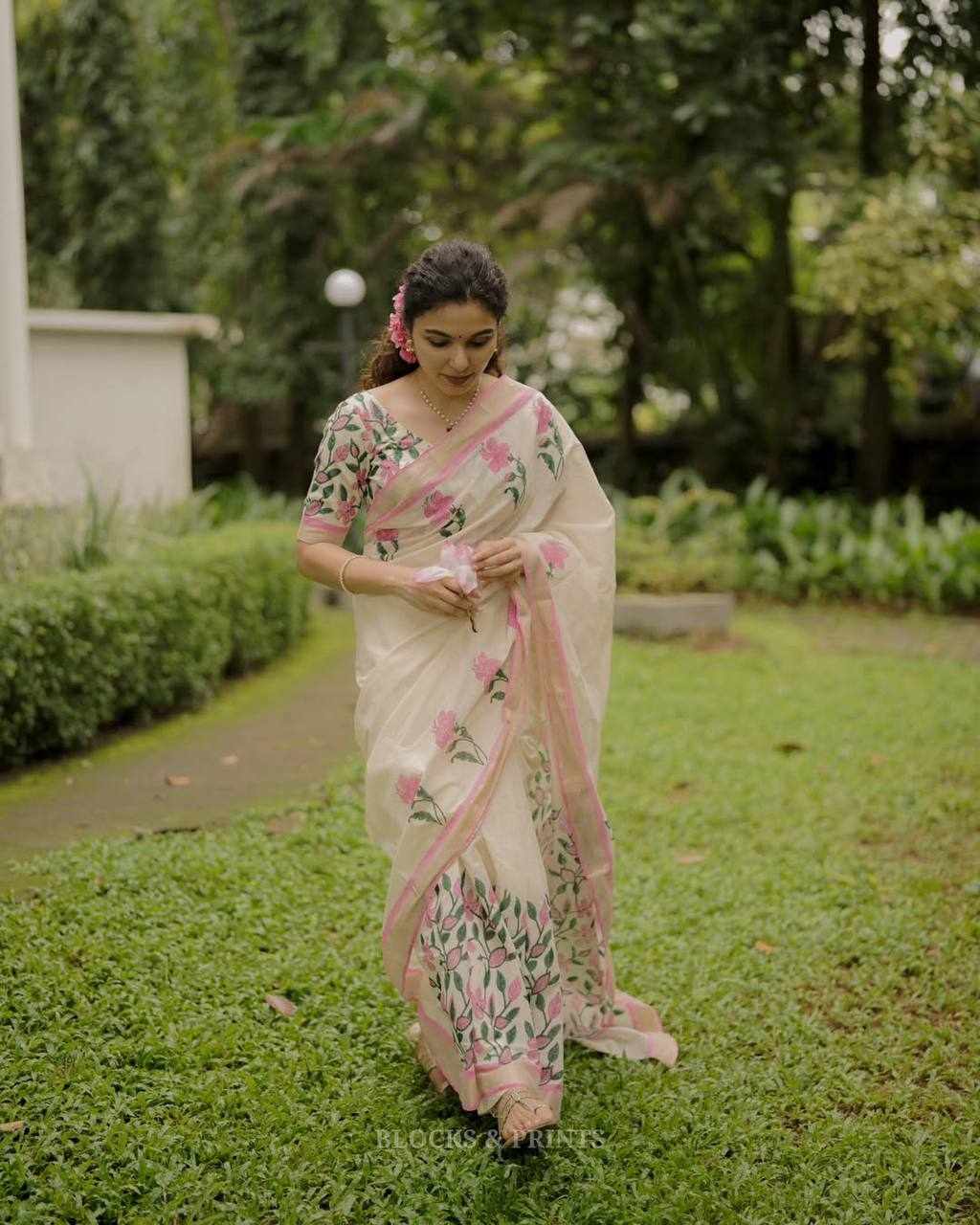 Blouse Fabric: Linen Cotton with matching digital print (same as model wear)