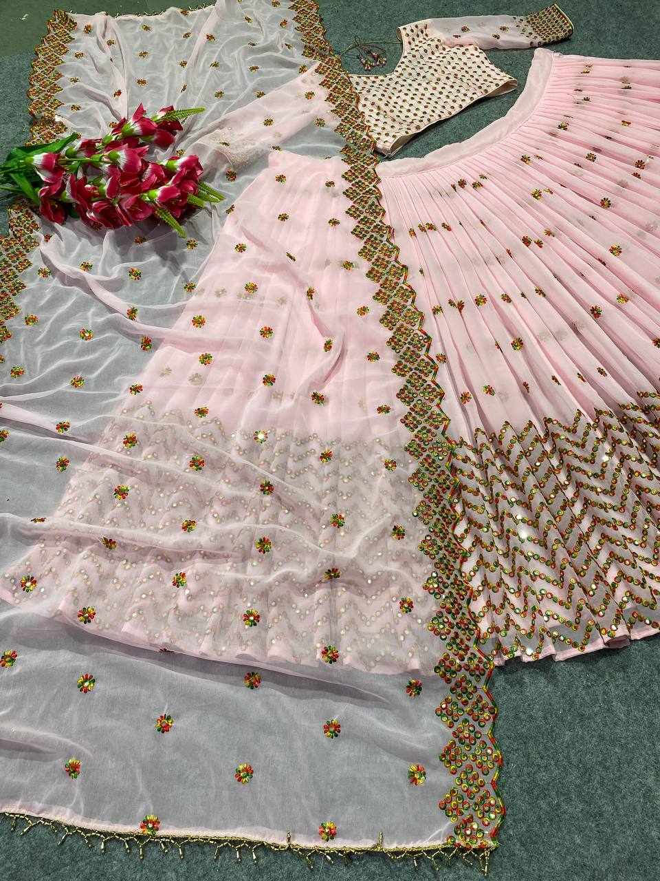 | Name : | MF 412 Peach Heavy Georgette Lehenga |
