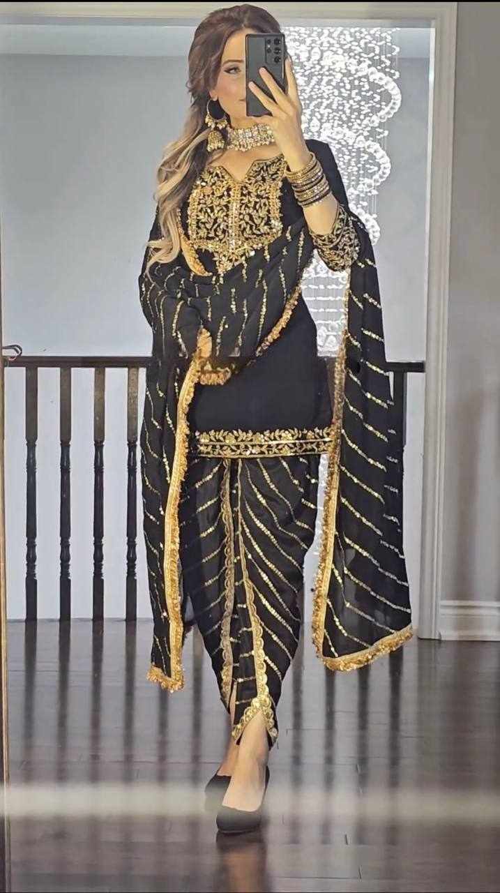 Dhoti Salwar: Heavy Pure Chinon with Embroidery 5mm Sequence Work (Fully Stitched Dhoti Style, XL Size, Length: 41-42)