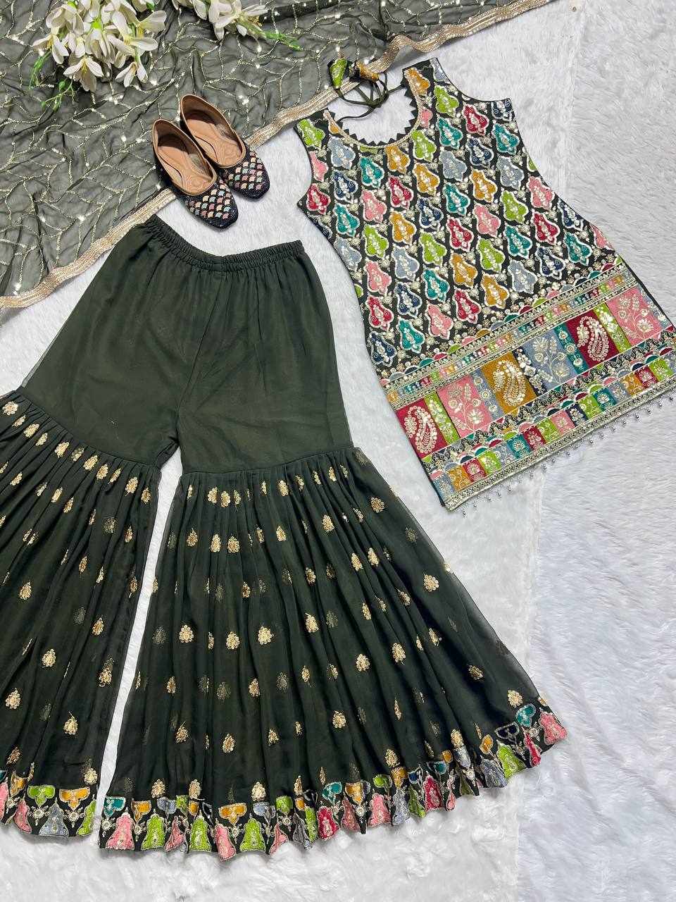 Plazzo Fabrics: Heavy Faux Georgette with 3mm Embroidery Sequence, Fully Flair