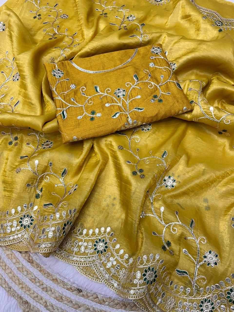 | Name : | RC Gota Foil Mustard Beautiful Designer Saree |